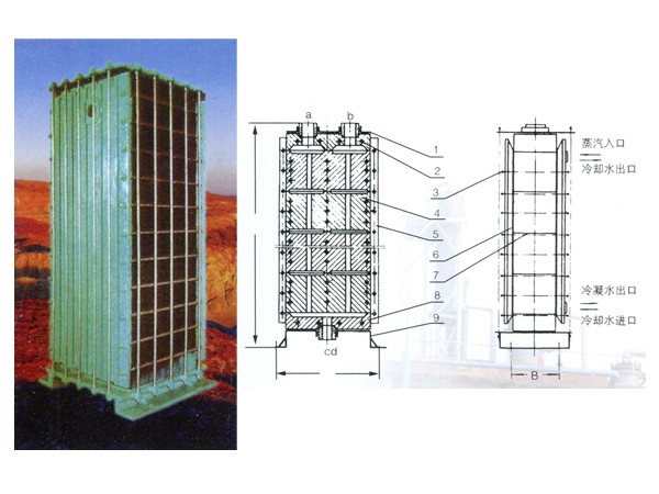 結構與特點:結構簡單、緊湊,流體阻 力小。可制造最大換熱面積達1000平方米的換熱器。主要用于冷卻或冷凝,亦可根據用戶提供圖紙或代為設計制造特殊規格的產品。技術特性:許用溫度:作加熱器≤120℃作冷卻器-30?130℃許用壓力:管程<0.2MPa殼程 <0.3MPa