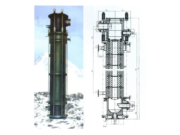主要用于硫酸鉀生產系統,成功替代了進口設備。該設備要求頂部零部件耐溫540度左右,下部為多節式組合,介質經多次再分配冷卻、吸收,介質出口溫度55度左右。設備整體全部采用石墨材料。我公司經特殊處理,成功解決了設備耐高溫、雙向耐腐蝕等諸多技術難題,技術水平為國內行業之最。